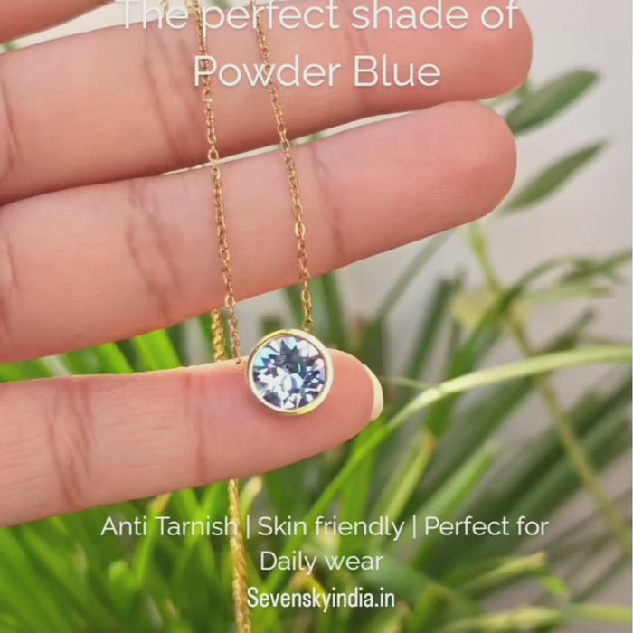 Elevate your everyday look with a touch of calm. The Forever Blue Charm Necklace blends minimal luxury with a stunning powder blue Swarovski stone, creating a timeless sparkle that mimics the morning sky.