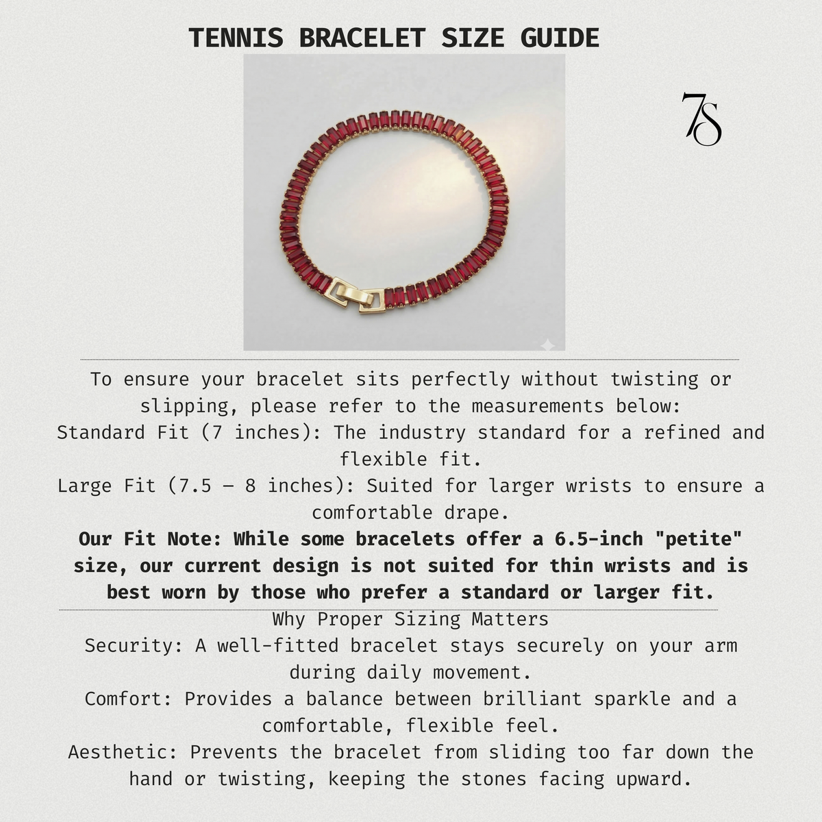 A timeless accessory that blends royal elegance with modern versatility, the Ruby Red Baguette Tennis Bracelet is a must-have addition to your jewelry collection. Perfect as a grand gesture or a chic treat for yourself. ❤️✨